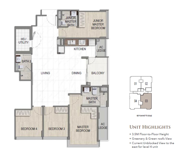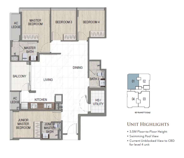 The 4-bedroom units here range from 1,076 to 1,130 sqft, starting from just $2.76xM.